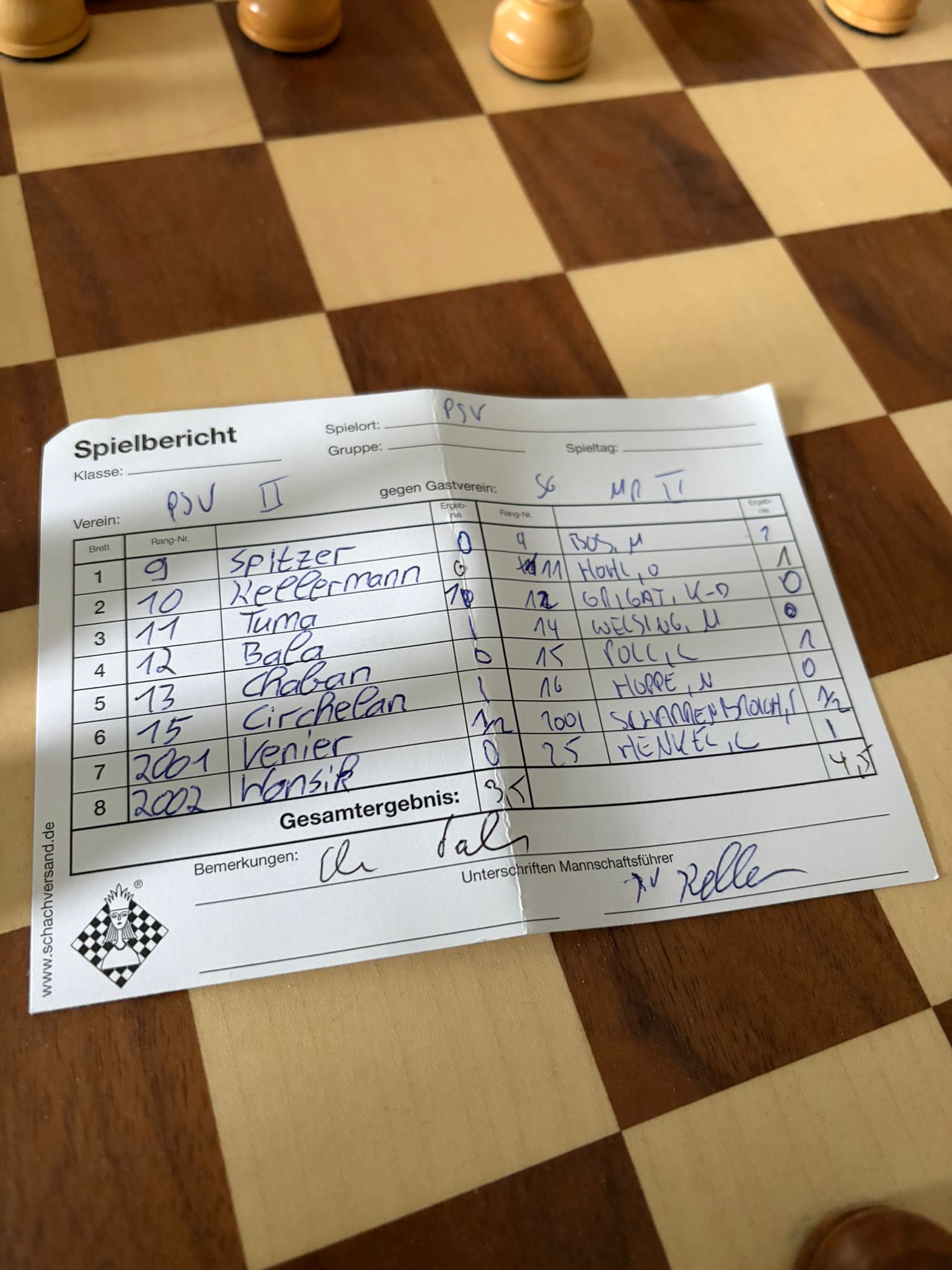 Die Spiele selbst liefen für uns erst gemischt. Leon konnte schnell die Niederlage von Norbert kontern, nachdem sein Gegner seine Dame eingestellt hatte. Christian konnte ebenso schnell auf Gleichstand stellen als Michael W. seine Partie abgegeben musste. Torsten legte mit einem halben Punkt nach und nach Klaus‘ Niederlage hieß es, dass die beiden Spitzenbretter gewinnen mussten. Und Michael B. und Oli konnten liefern und so unseren ersten Sieg einfahren. Da die Schachfreunde von Brett vor’m Kopf allerdings auch gewinnen konnten hatte das leider keine tabellarischen Auswirkungen.