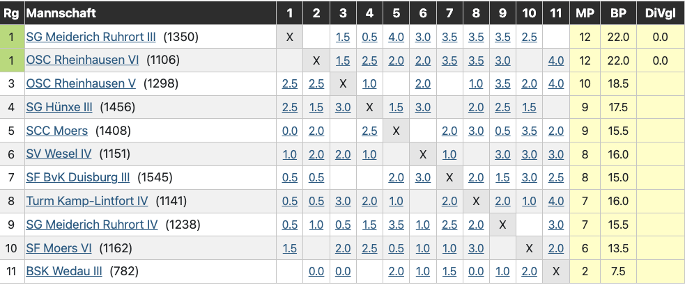 Die gute Nachricht: Wir haben am letzten Spieltag endlich unseren ersten Mannschaftskampf gewonnen. Die schlechte Nachricht: Wir schließen die Saison trotzdem als 10ter ab und steigen in die Bezirksklasse ab.