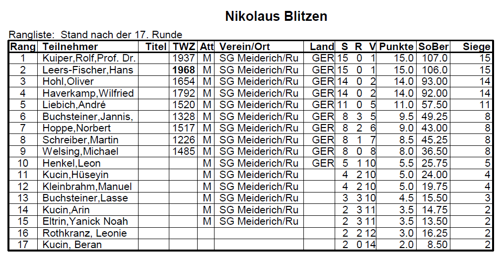 Am vergangenen Freitag spielten wir unser traditionelles Nikolaus-Blitzturnier aus. Kalendarisch bedingt ging es bereits am 05.12 um den begehrten Titel in unserem Verein.